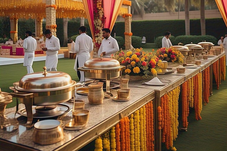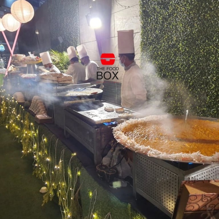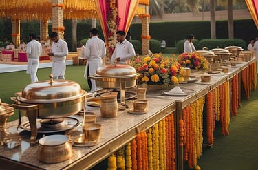 Elegant buffet with premium setup | Includes professional serving staff | High-quality crockery, cutlery, and presentation | Customized menu options & live counters. |. Ideal for pre wedding events & upscale gatherings